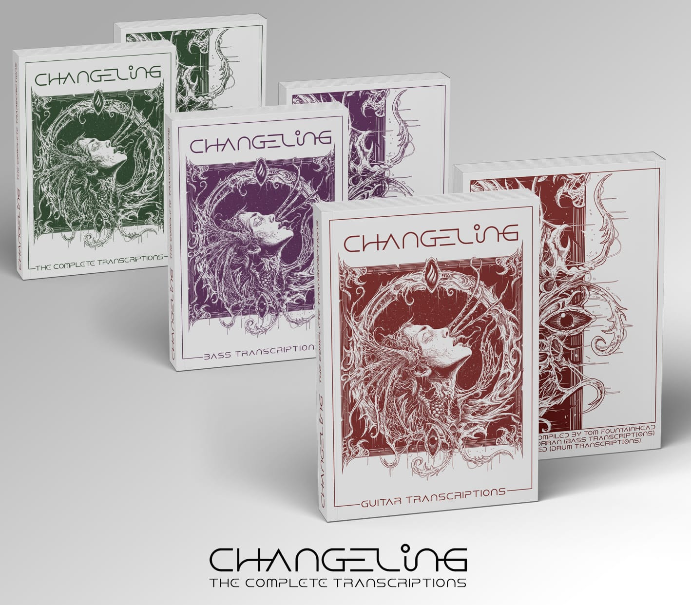 Changelingblends progressive metal, death metal, jazz-fusion, world music and complex orchestration into an hour-long submersion into the subconscious. Players from around the world can follow Tom Fountainhead’s lead with a new series of Changeling transcription books. Tom wrote the approx. 500 page guitar transcription book himself, while core bandmate Arran McSporran transcribed the 75 page edition for bass.