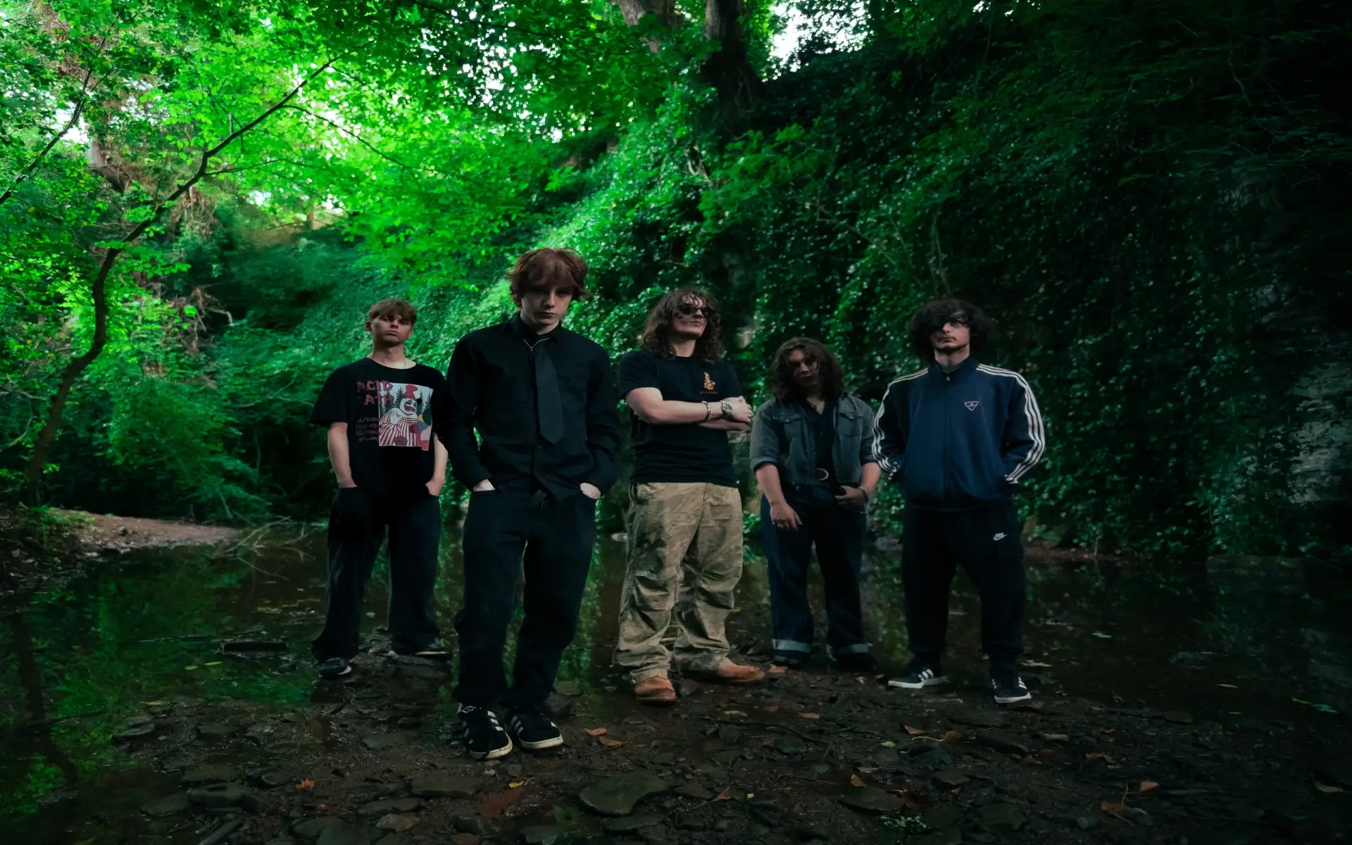 ‘Ego Death’ launches with chugging, feedback-laden guitars before erupting into a gut-wrenching growl from frontman Noah Annandale. His commanding vocals soar above relentless drums and a punishing bassline, delivering a track that never lets up. While ‘The Skin I Live In’ opens with a teeth-rattling riff that could sit comfortably on an early Sabbath record. Guitarists Joel Hardwick and Sonny Evans riff in brutal harmony, while Alfie Murphy’s thunderous bassline kicks the track into a sludgy, driving groove. All of it is anchored by the precision drumming of George Moss, culminating in a full-blown sludge metal assault.