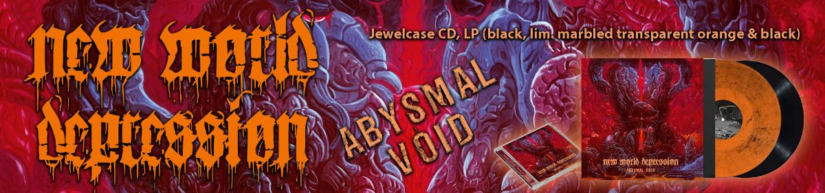 Musically, NEW WORLD DEPRESSION stay on track and true to their old school death metal roots, yet “Abysmal Void” received a healthy dose of more groove, more atmosphere, and more depth. Sound-smith Jörg Uken has honed the album to perfection at his famous Soundlodge Studio in East Frisia, which enjoys an excellent reputation in death metal circles and beyond.