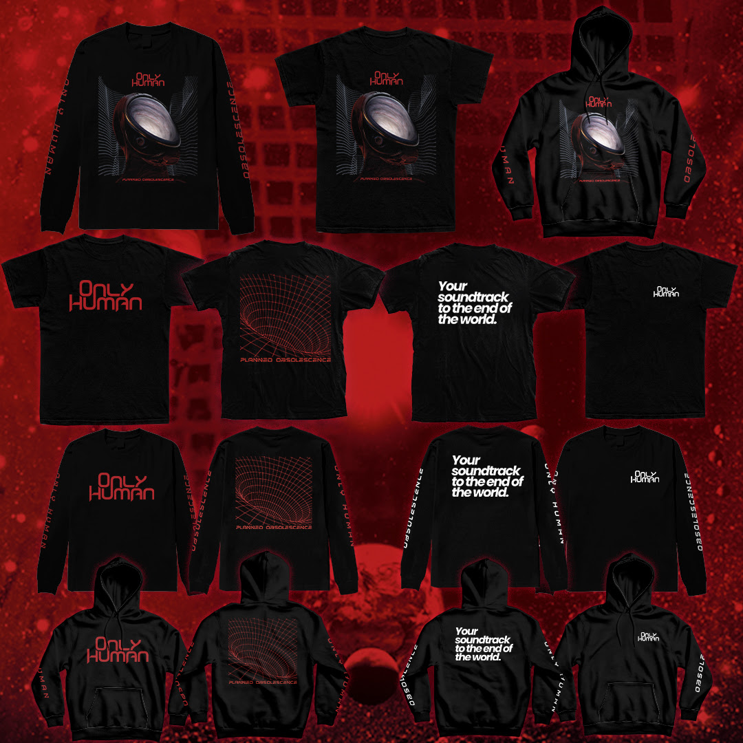 “We like a lot of bands that just play rock music, but we wanted ONLY HUMAN to be about something”, says Christensen, who also produced, mixed and mastered Planned Obsolescence. “This album is supposed to wake people up to all the ways technocracy is encroaching on society. We now live in a reality where humans are products to be consumed and disposed of”.
