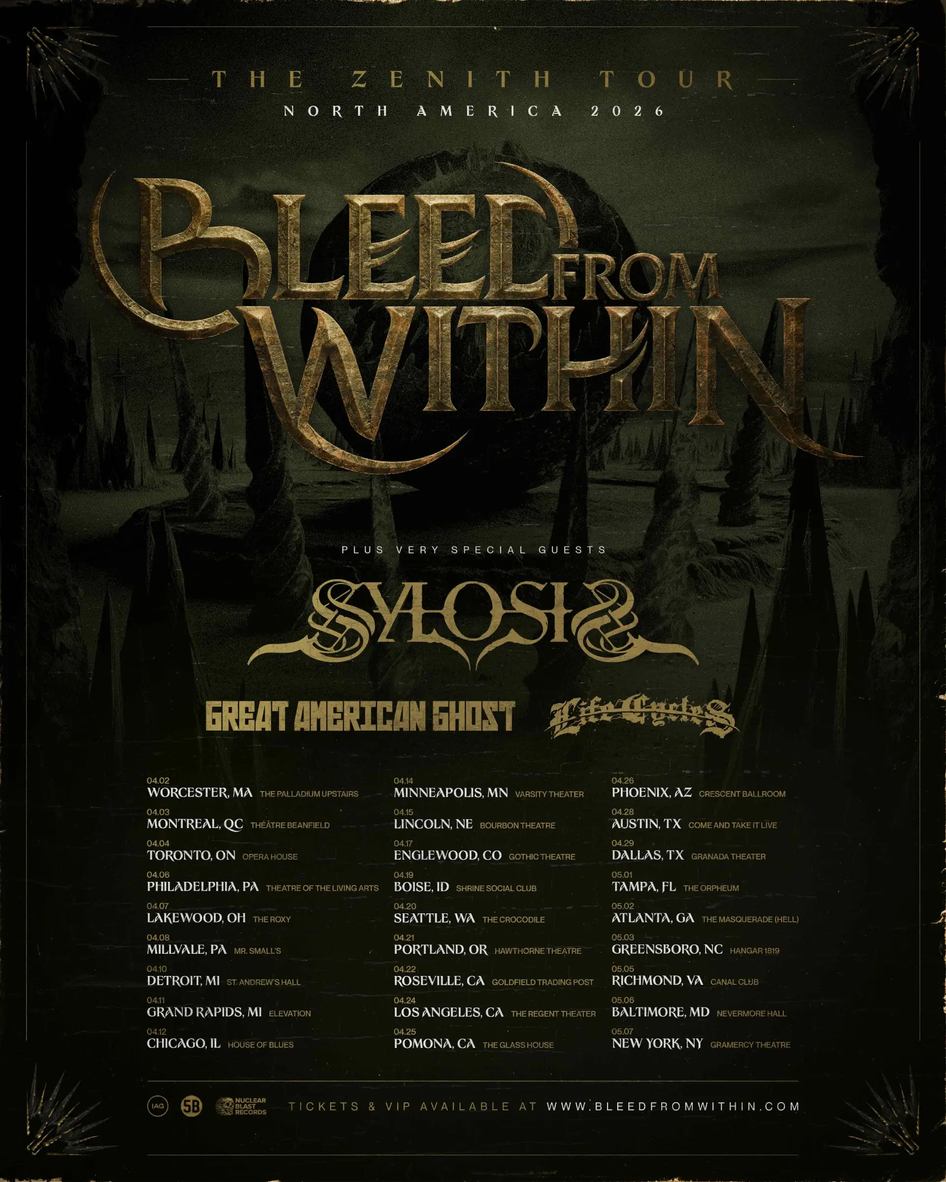 SYLOSIS will also be touring North America across April and May 2026 with Bleed From Within, Great American Ghost & Life Cycles. Full dates are here: