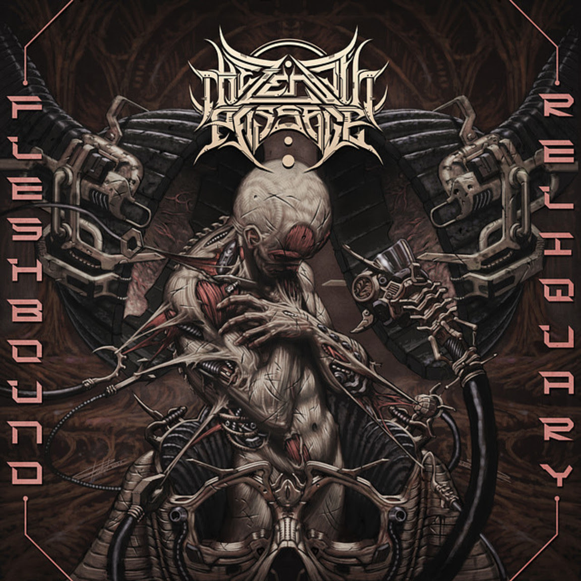 Comments vocalist Derek Rydquist, “‘Fleshbound Reliquary’ depicts a world and existence where resources have been so ravaged that we are forced to look towards ourselves as the means of production for what comes next.”